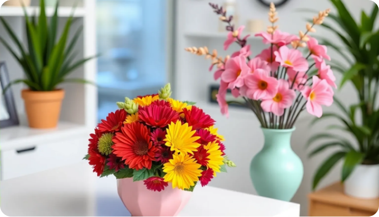 Ничто так не поднимает настроение, как зеленые растения и свежие цветы. Выберите несколько неприхотливых комнатных растений — кактусы, суккуленты или фиалки, которые будут радовать глаз. Также можно периодически менять цветочные композиции: ставить букеты с яркими и красивыми цветами, такие как хризантемы или герберы. Это создаст атмосферу живости и радости в кабинете, а также позволит пациентам почувствовать себя более расслабленно и комфортно.